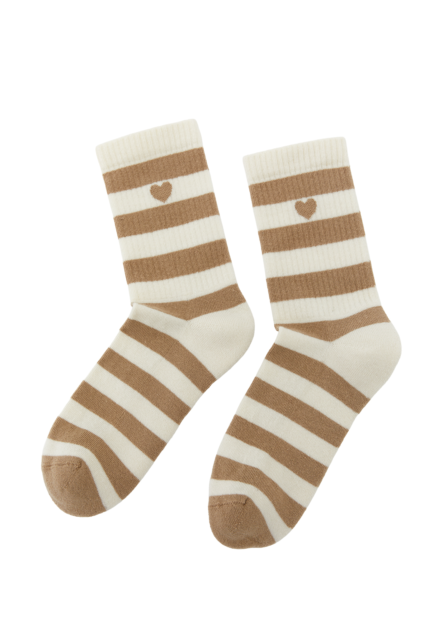 Bu krem tonlu çizgili çorap, kombinin sessiz kahramanlarından biri.
