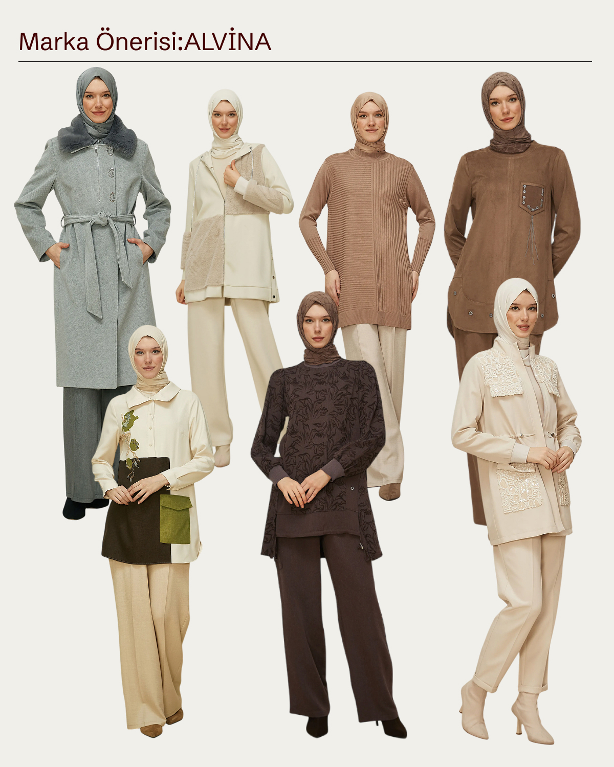 Günlük hayatta hem rahat hem de derli toplu görünmek isteyenler için Alvina tam bir denge markası. Yumuşak dokular, dökümlü formlar ve kombin yapmayı kolaylaştıran sade tasarımlar öne çıkıyor. Trikolar, tunikler ve iki parça takımlar sayesinde fazla düşünmeden şık bir görünüm elde etmek mümkün. Abartısız ama özenli bir stil kurmak isteyenler için gardıropta uzun süre yer bulacak parçalara sahip.