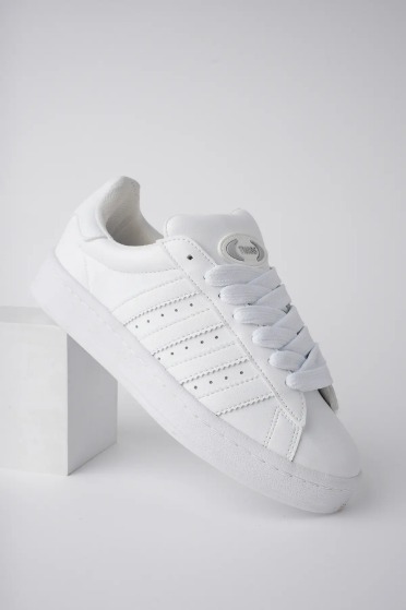 Günlük olarak giyilebilir sade ve şık görünüm sağlayan rahat beyaz spor ayakkabı
