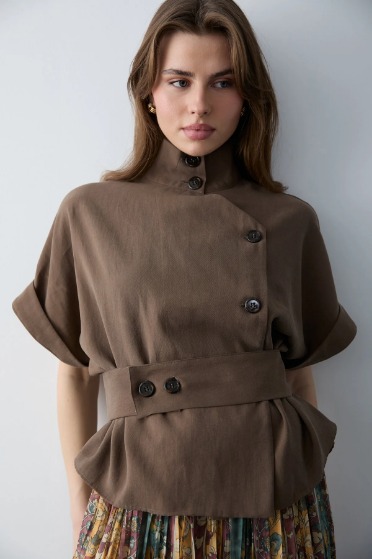 Yarım pat düğmeli vücuda oturan bluz