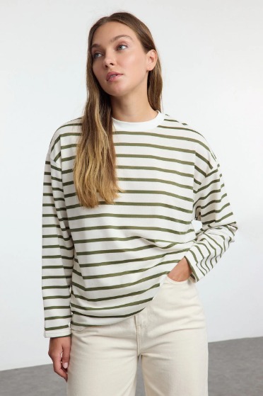 Hakş çizgili oversize sweatshirt
