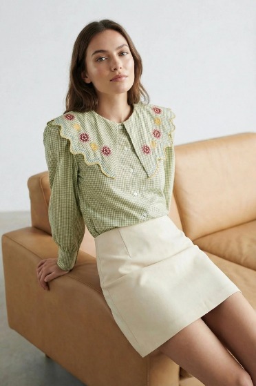 Yeşil nakış detaylı gömlek