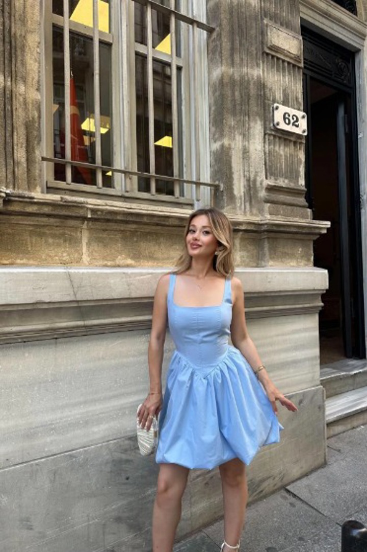 Mavi elbise altı güzel olur