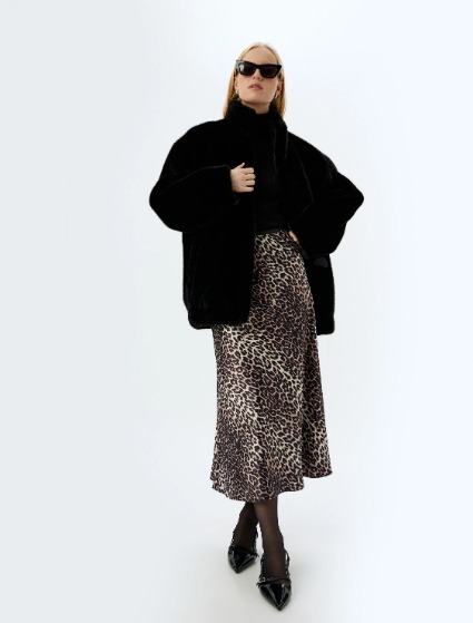 Vahşi leopar desenini, asil bordo tonları ve dokulu deri detaylarla harmanlayarak "fazlası daha iyidir" diyen cesur ve sofistike bir duruş sergiliyor.