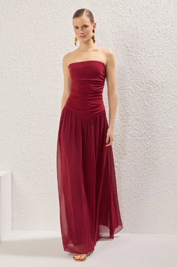 A kesim straplez elbise