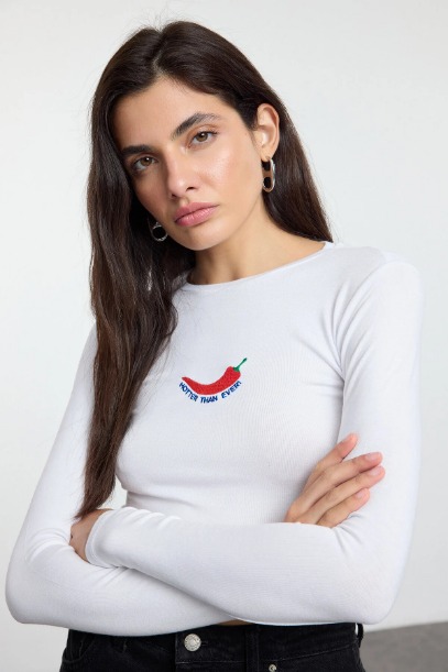 Beyaz uzun kollu biberli tişört