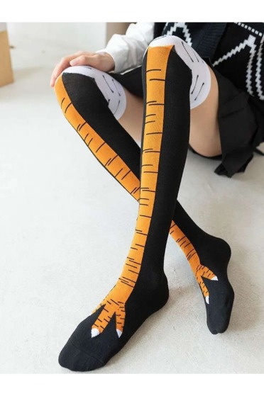 Tavuk Ayağı Desenli Uzun Çorap