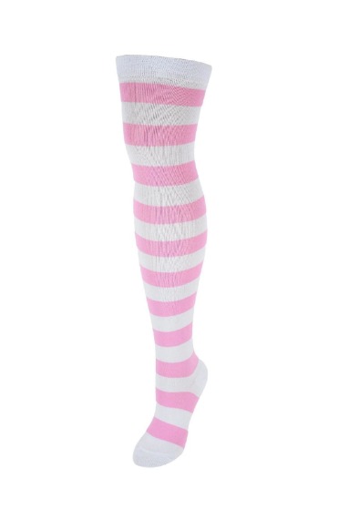 Beyaz Pembe Çizgili Çorap