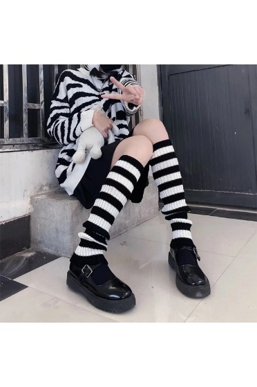 Siyah Beyaz Çizgili Tozluk