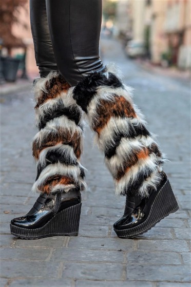 Siyah Beyaz Peluş Tozluk