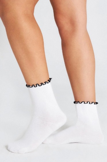 Siyah Fırfırlı Beyaz Çorap