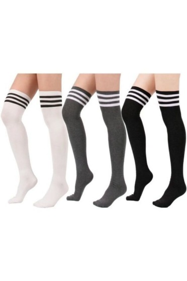 Üç Çizgili Diz Üstü Çoraplar