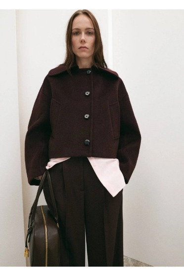 Mürdüm rengi yünlü sıcacık bir ceket 🧵