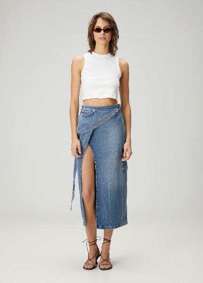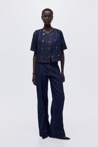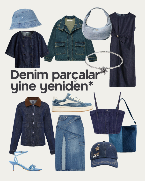 Bu sezon denim biraz fazla mı özgüvenli? Belki. Başrolü kimseyle paylaşmak istemiyor mu? Ona da evet. Ama dürüst olalım: Baştan aşağı denim görünümünün o “cool’um ama uğraşmadım” tavrını hiçbir şey yenemiyor. Kumaşın dokusu, mavinin ton oyunları, dikişlerin verdiği o hafif işçi estetiği… Hepsi birleşince ortaya hem ikonik hem de zamansız bir enerji çıkıyor. Üstelik tek bir parçayla değil, komple bir denim evrenine adım atıyoruz.