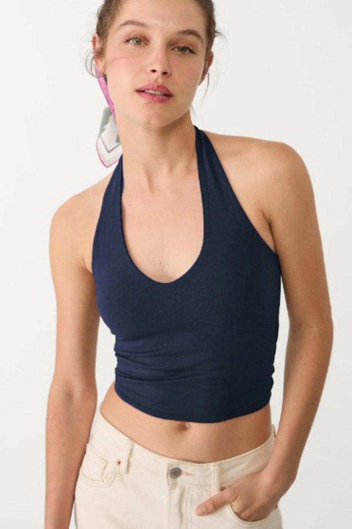 Lacivert halter yaka bluz