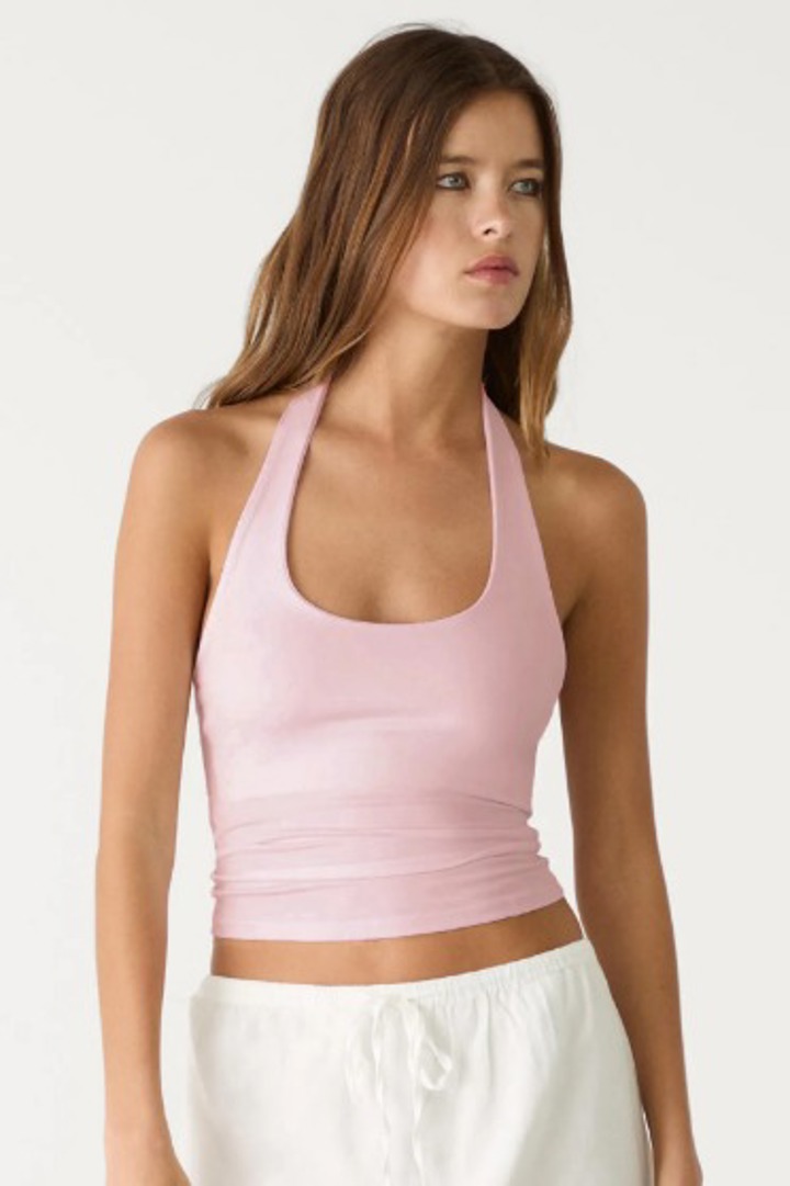 Pembe halter yaka bluz