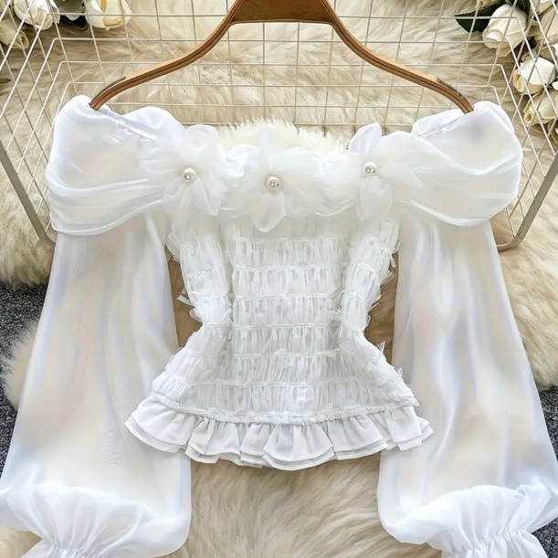 Dreamy Sleeve Crop Blouse, Top -Pembe | Lolilatte