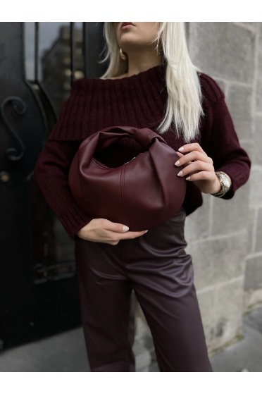 Bordo detayla tamamlanan zamansız siyah kombin.