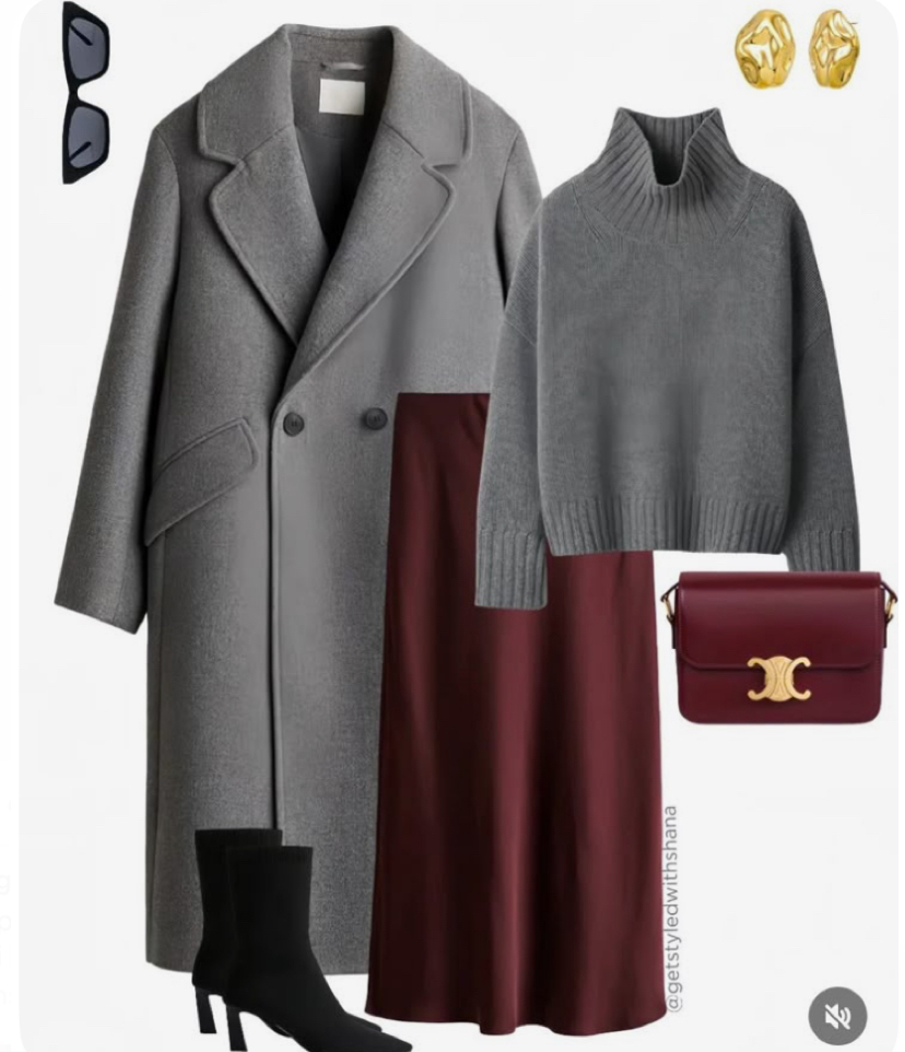 Şehrin soğuk gri tonlarını, bir kadeh bordo şarabın sıcaklığı ve altın ışıltılı detaylarla harmanlayarak modern bir kış zarafeti sunuyor.