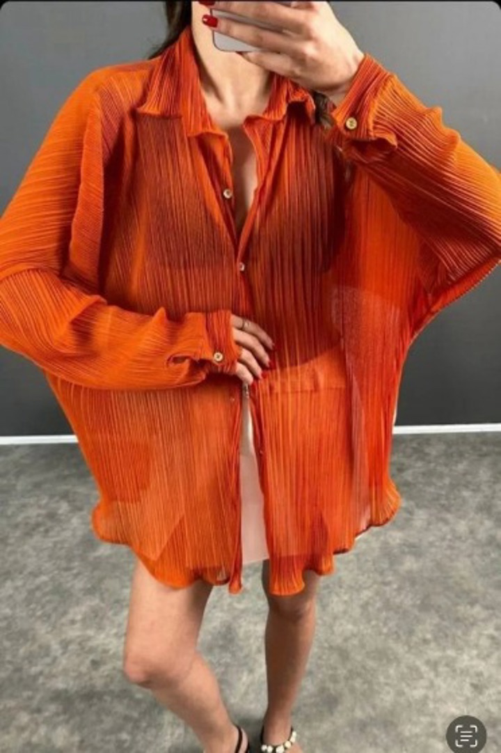 Geniş kalıptır, transparan bir görünümü var. Bikini üstüne bile tercih edilebilir