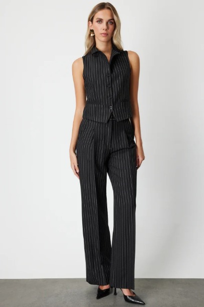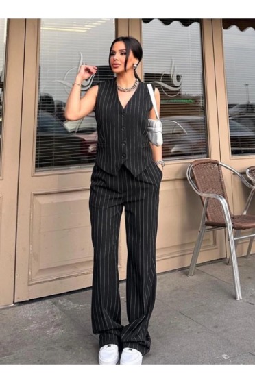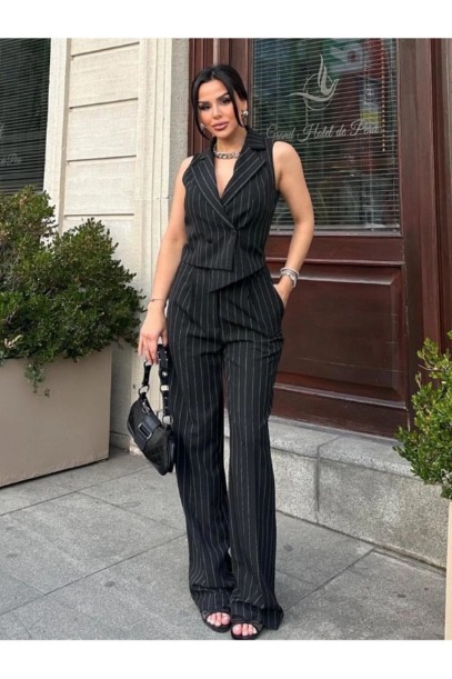 Düz siyah çizgili takım