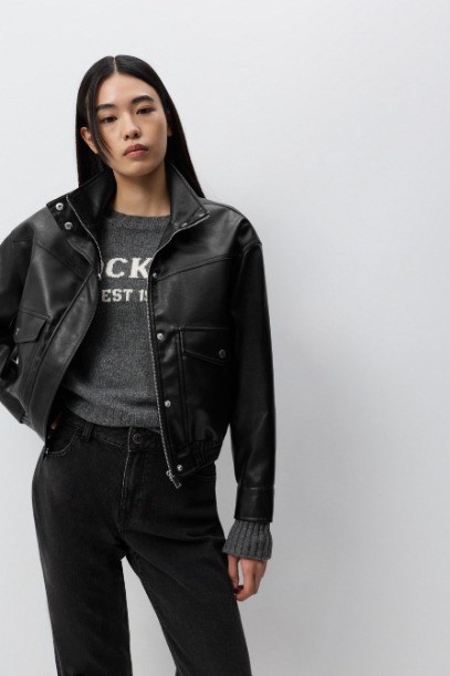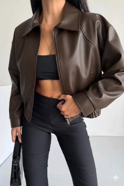 Yeni sezondan siyah suni deri bomber ceketler 🩷✨