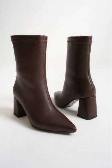 Acı kahve cilt sivri burun ortadan dikişli topuklu bot