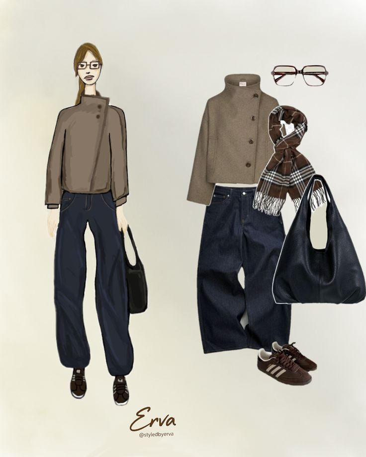 “Çizim ve kombin bir araya geliyor; dijital katmanlarla parçalar daha canlı, daha anlatımlı bir hale geldi. Keyifle çalıştım umarım beğenirsiniz.🪶🤎