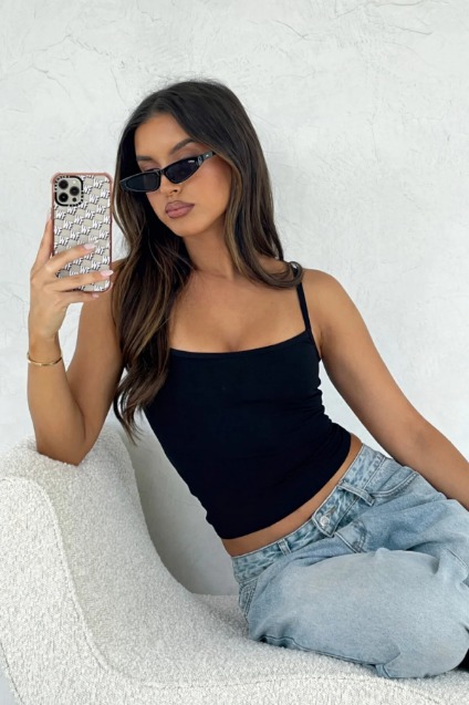 İnce askılı crop/bluz