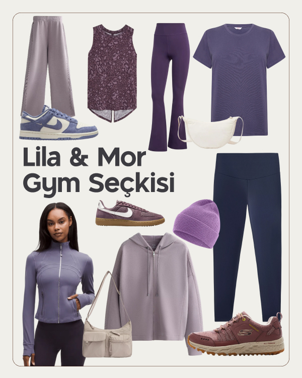 Lila ve mor, bu sezon spor giyimde yalnızca bir renk tercihi değil; ruh hâlini ve enerjiyi de belirleyen güçlü bir ifade alanı. Yumuşak tonlarıyla dinginlik, derin renkleriyle kararlılık hissi veren bu palet, gym stilini daha sakin ama daha iddialı bir noktaya taşıyor. Bu seçkide yer alan 20 parça; antrenman sırasında hareket özgürlüğü sunan formlar, ciltle uyumlu dokular ve güncel kesimlerle bir araya geliyor.