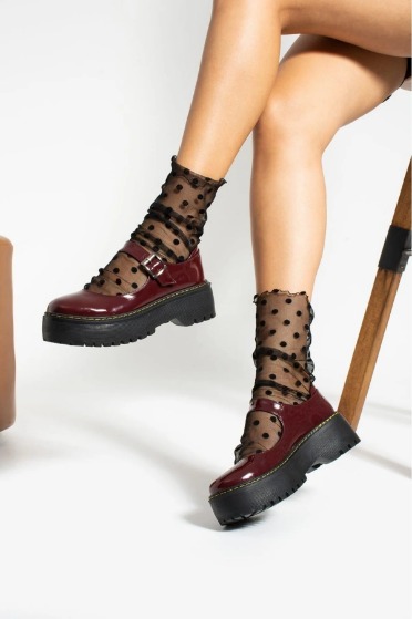 Oxford Rugan Bordo Harajuku Tarz Lolita Ayakkabı