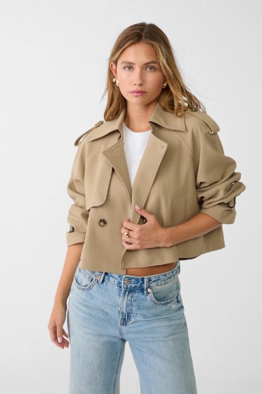 Kısa Ve Dökümlü Kumaş Trençkot