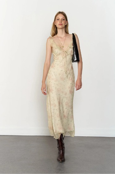 Puantiyeli Askılı Mini Elbise Krem