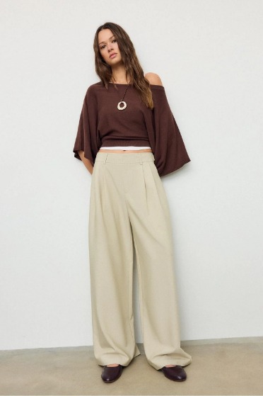 Pileli Geniş Pantolon