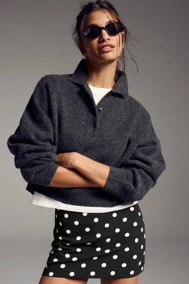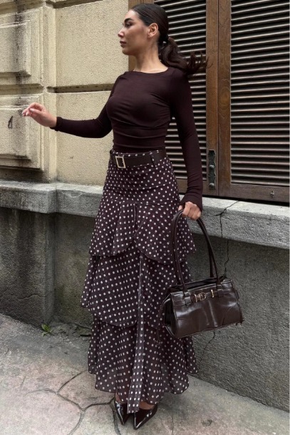Puantiyeli Yırtmaçlı Maxi Etek SH255