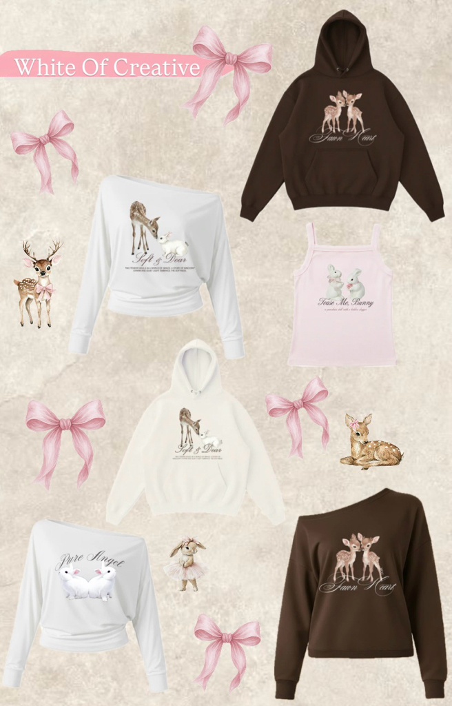 Yumuşak pastel tonların ve zarif fiyonk detaylarının hakim olduğu bu koleksiyon; yavru ceylan ve tavşan figürleriyle doğanın masumiyetini modern bir 'coquette' estetiğiyle birleştirerek, gardırobunuza hem sıcak hem de romantik bir dokunuş katıyor.