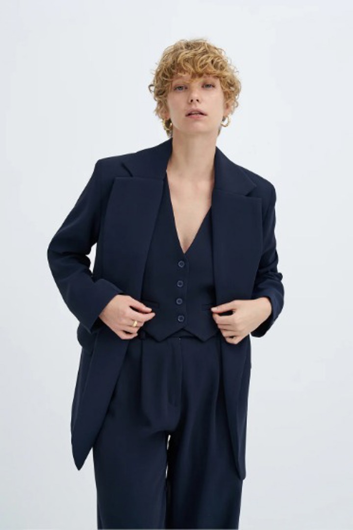 Bu kapsül dolap, sade ve uyumlu bir stil yaratmanız için tasarlandı. Lacivertin derinliği, gri tonların dinginliği ve beyazın ferahlığı, her parçanın birbirini tamamladığı bir uyum paleti oluşturuyor. Günlük kombinlerinizi zahmetsizce oluştururken, her parça zamansız ve fonksiyonel tasarımıyla hem şıklığı hem de rahatlığı bir arada sunuyor. Minimalist yaklaşımıyla fazla detaydan arınmış, sadece ihtiyacınız olan parçaları barındıran bu dolap, stilinizi kolayca ifade etmenizi sağlıyor.