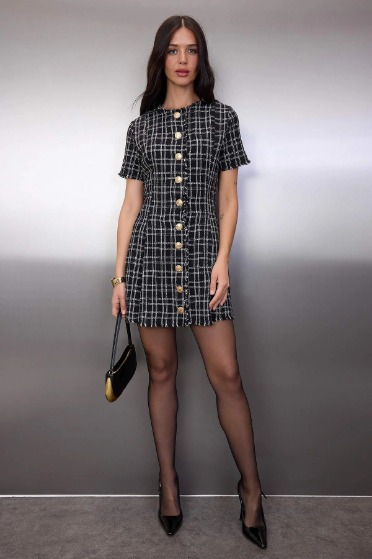 Siyah Ekose/Kareli Tuvit Mini Elbise