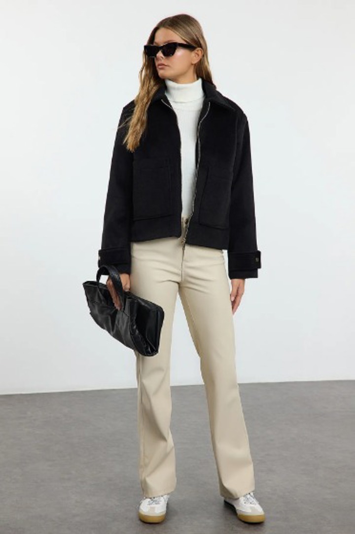 Vizon Cep Detaylı Fermuarlı Crop Ceket