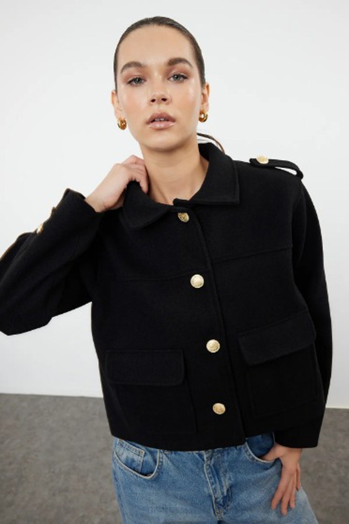 Siyah Gold Düğme Detaylı Ceket