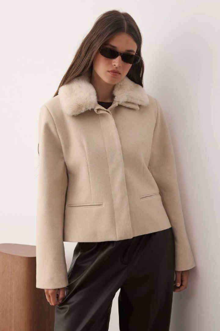 Yakası Çıkarılabilir Kürklü Kaşe Ceket Mont