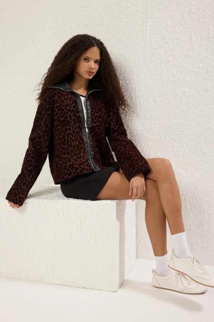 Leopar Desenli İnce Ceket Mont