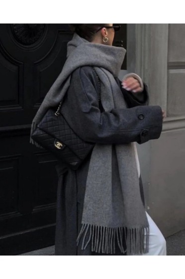Manukanın ekru kabanı da çok uygun bu kombin için