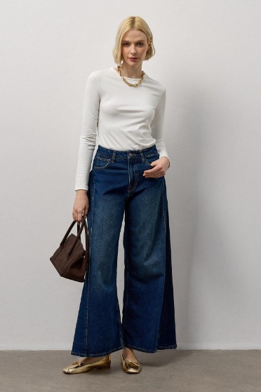 Yüksek Bel Pile Detaylı Jean