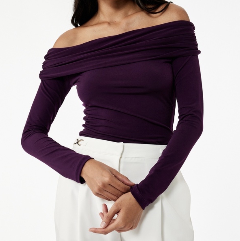 drapeli omzu açık mor bluz