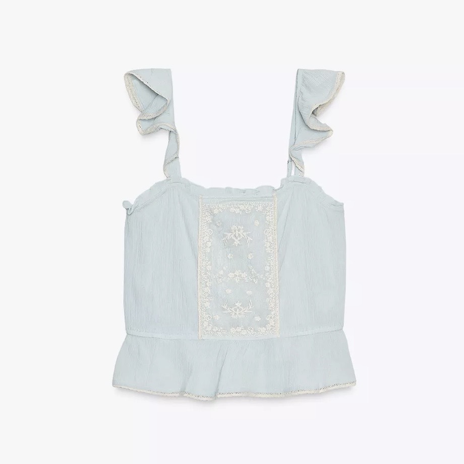işlemeli açık mavi fırfırlı bluz 🤍