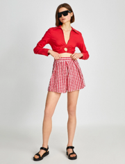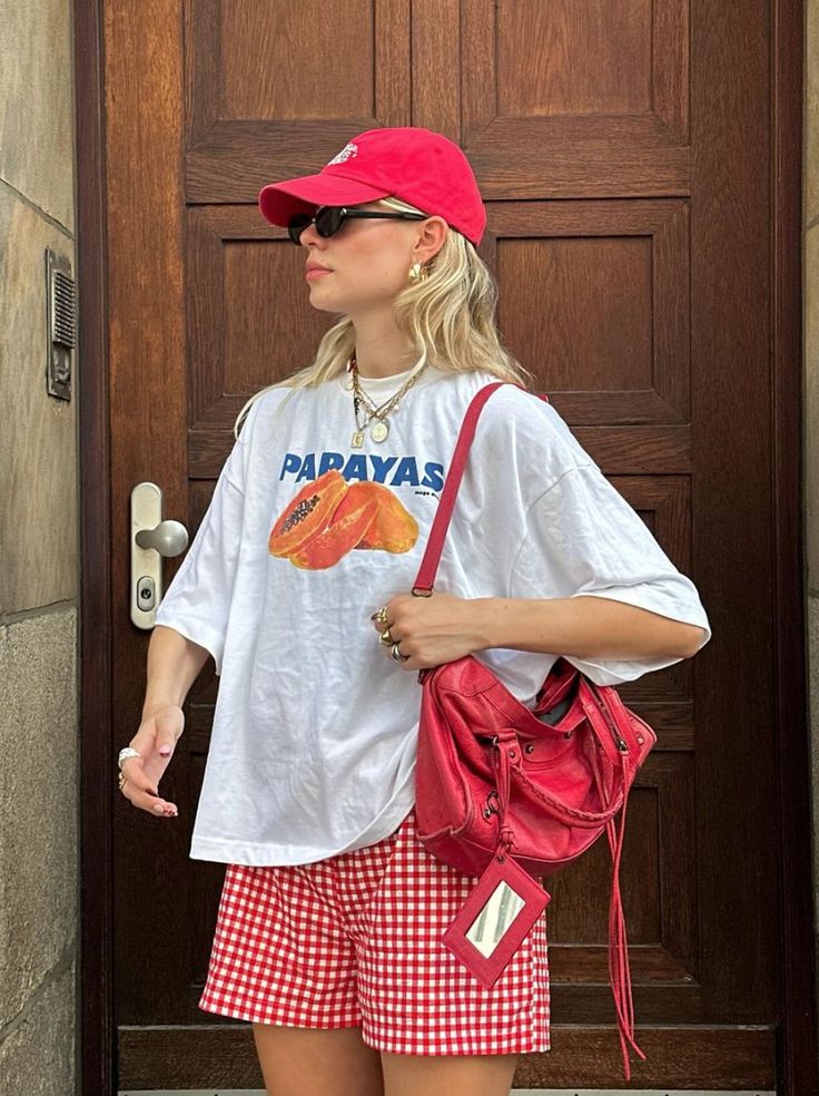 Kırmızı Pötikare şortlu kombin onerisi kizlar🧚🏻♀️