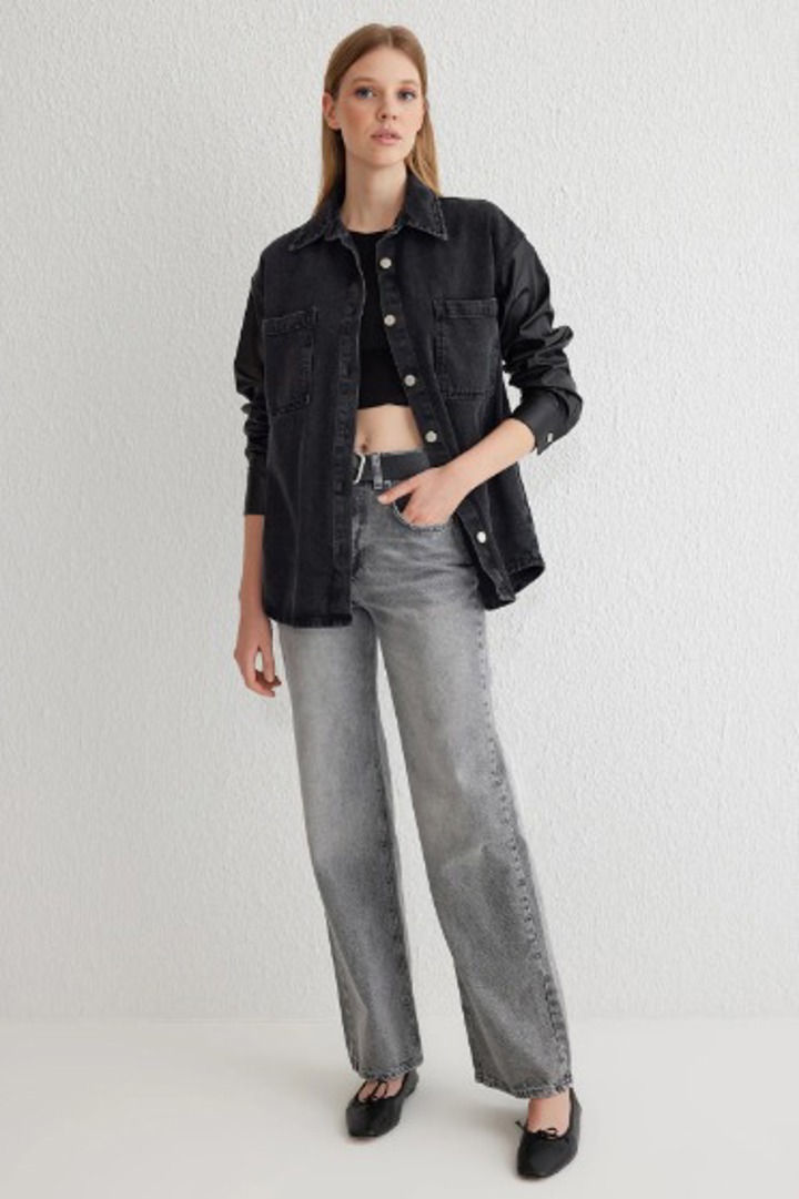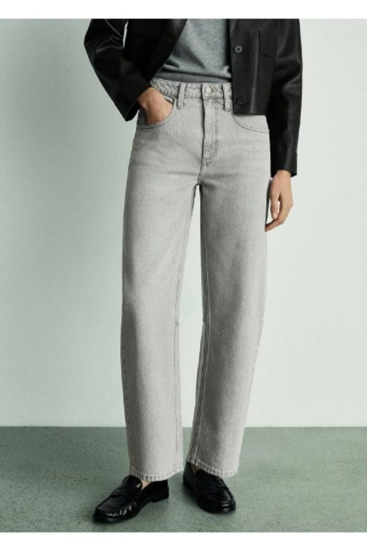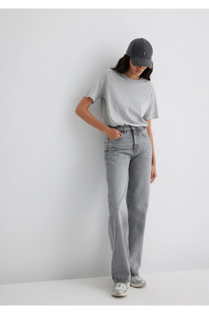 Gri yüksek bel geniş paça jean