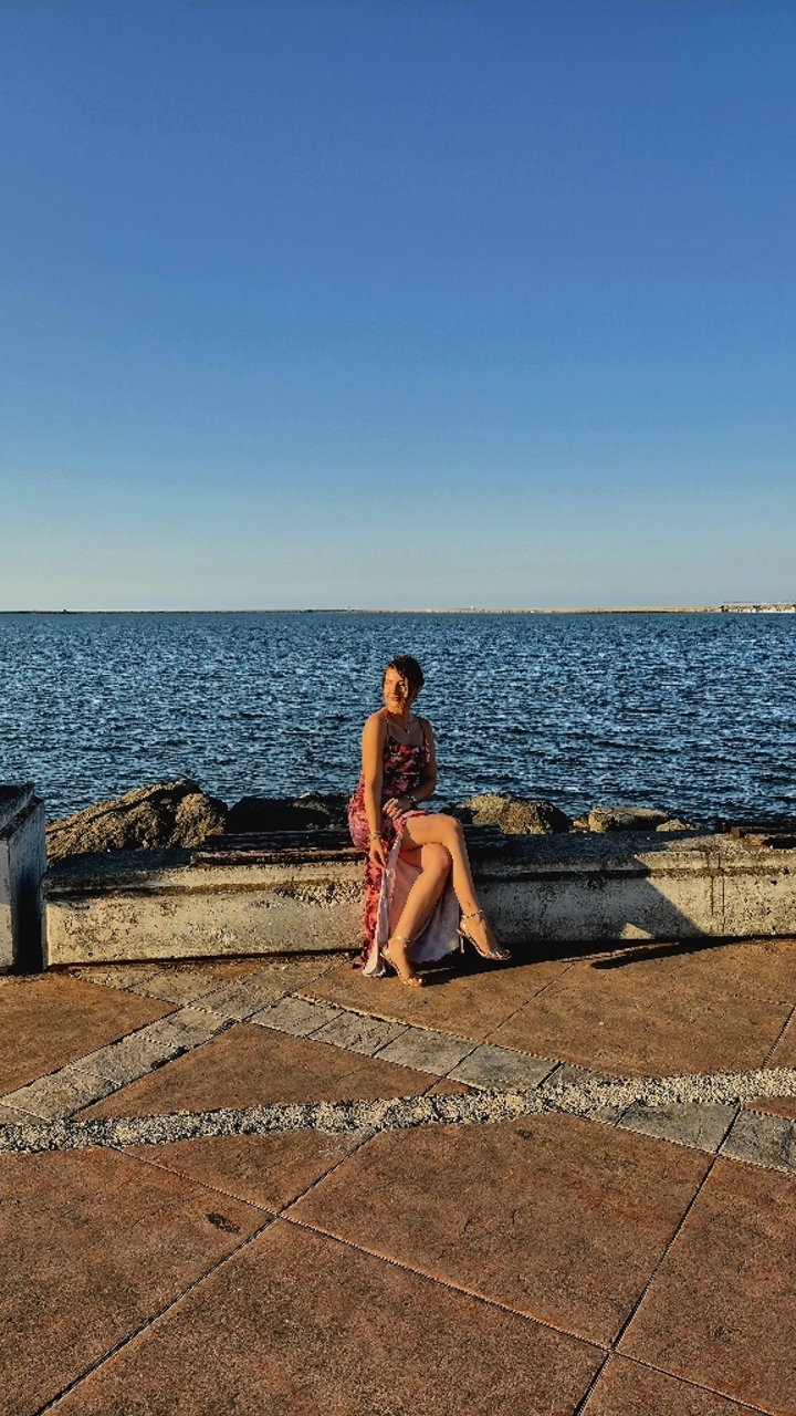 Sahil ve gün batımında o eşsiz güzel manzaraya yırtmaçlı bir o kadar rahat ve kendini içinde iyi hissettiren elbise