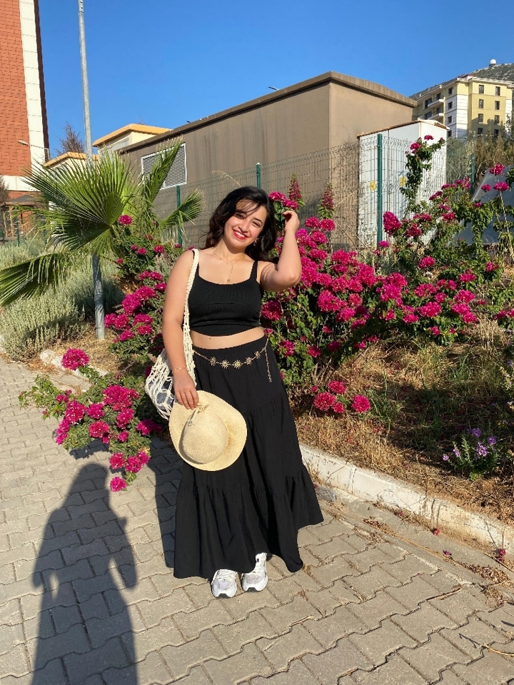 Siyah uzun pileli etek